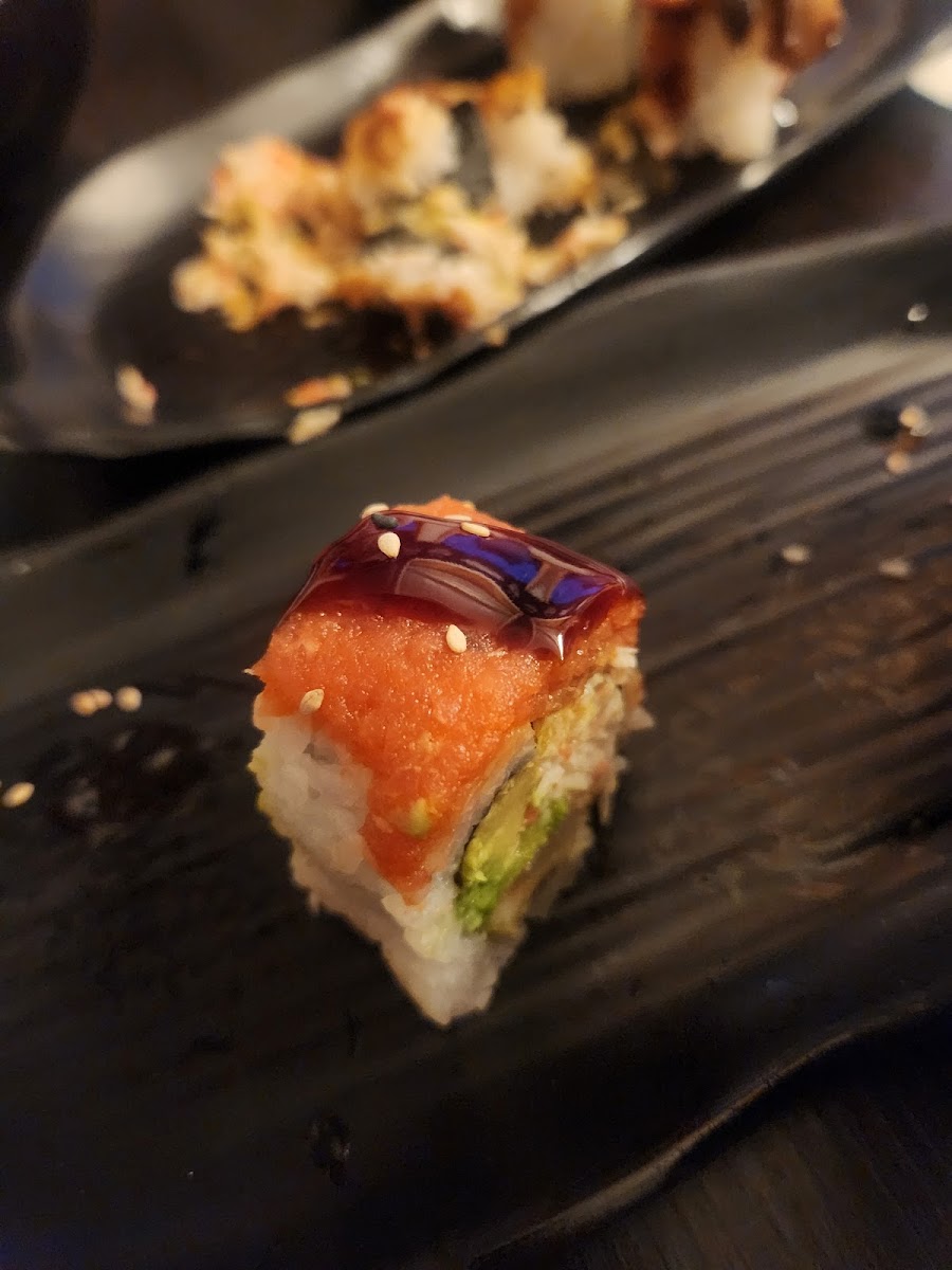 Fun spot in idywild to get something different. Didn't think we would find sushi. We were hungry so ate it before pictures unfortunately. The teriyaki chicken bowl was fantastic. The golden dragon ( I think that was its name) roll was warm and peelrfectly cooked. The spicy garlic edamame was smothered in garlic which we loved. We sill go again.